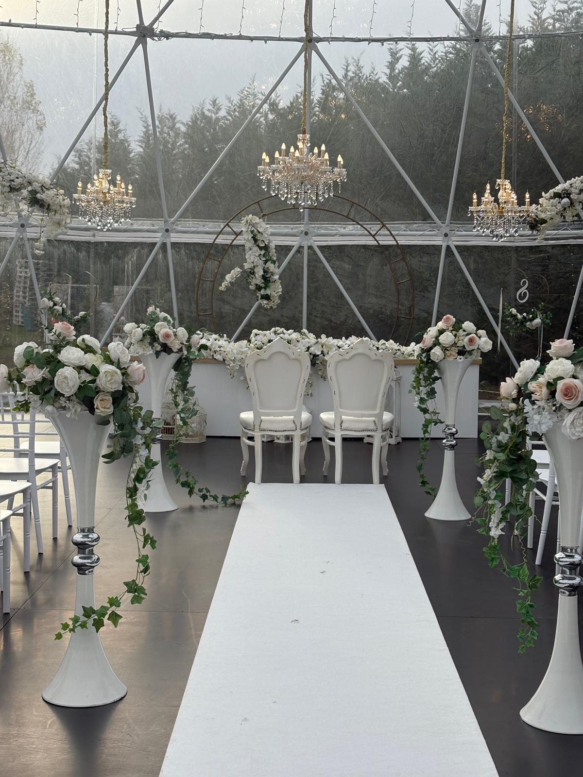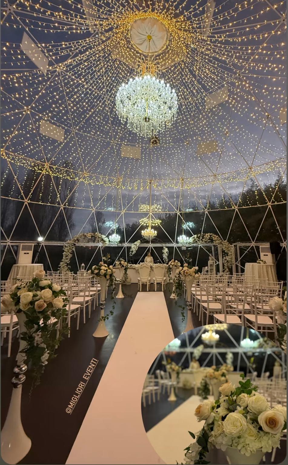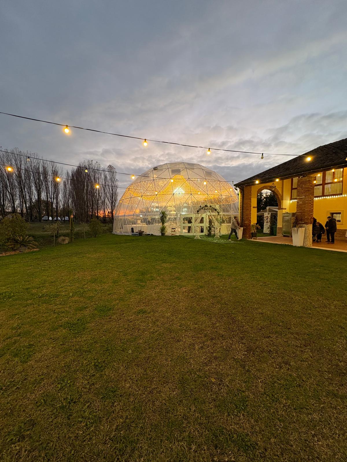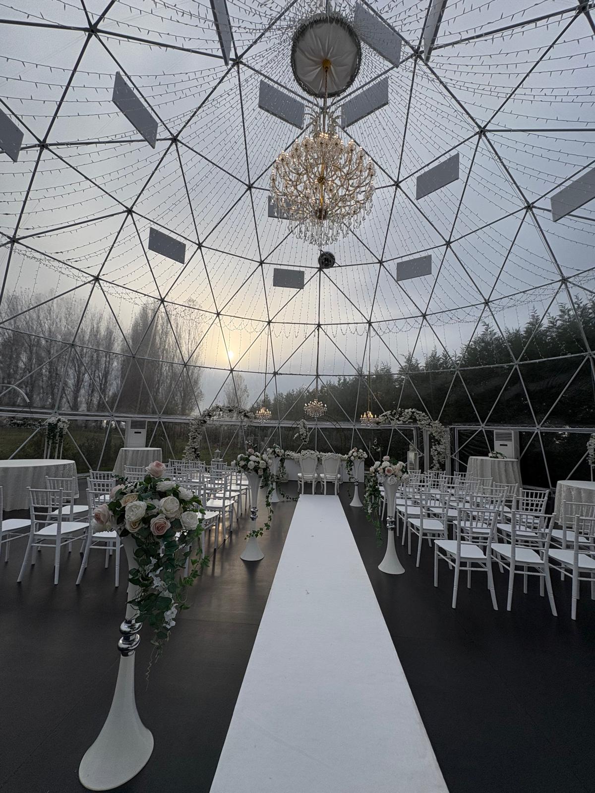 Richiedi disponibilità WhatsAppLa nostra cupola panoramica garantisce cerimonia e ricevimento anche in caso di pioggia o vento, senza rinunciare all’eleganza.